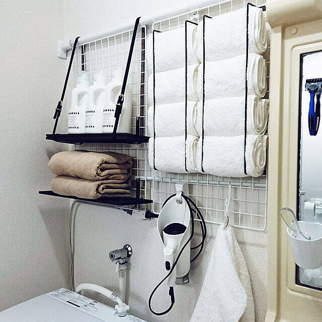 19 04 08 突っ張り棒活用 ワイヤーカゴ タオル収納 洗濯機の上 などのインテリア実例 19 04 08 06 10 15 Roomclip ルームクリップ